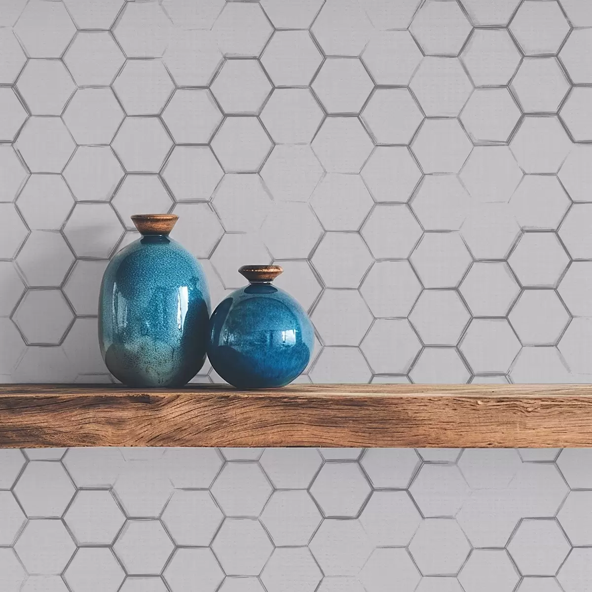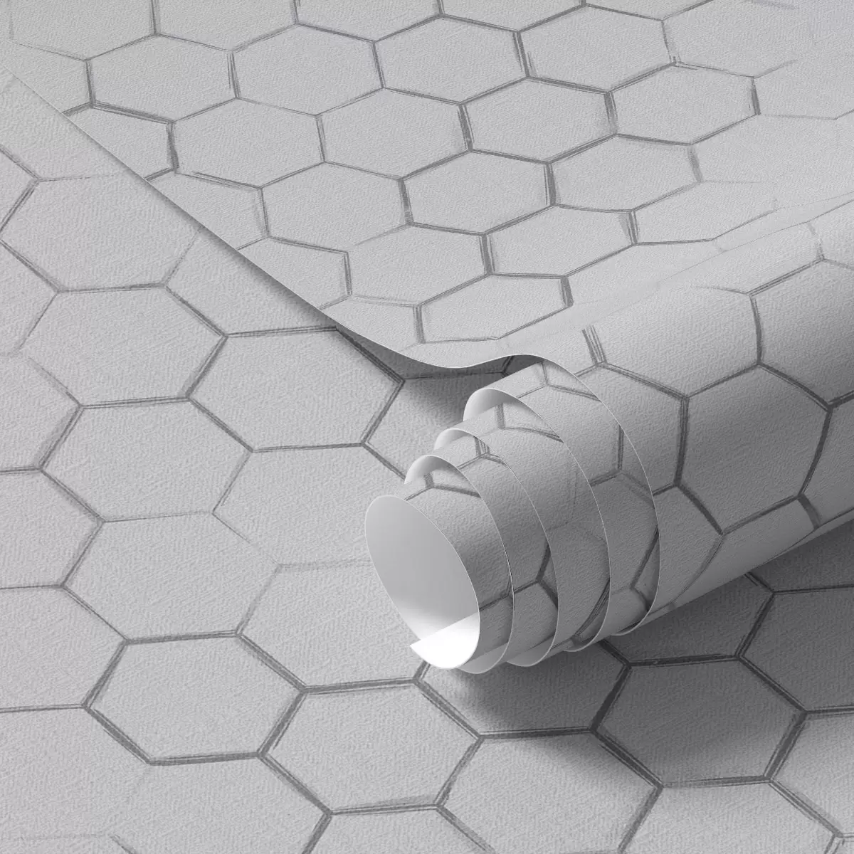 Papel tapiz Cuadrícula hexagonal fina sobre un fondo texturizado gris claro. Nr. a01060
