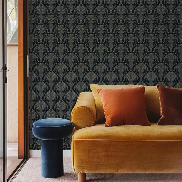 Papel tapiz Adorno Art Déco oscuro con plantas estilizadas Nr. a01065