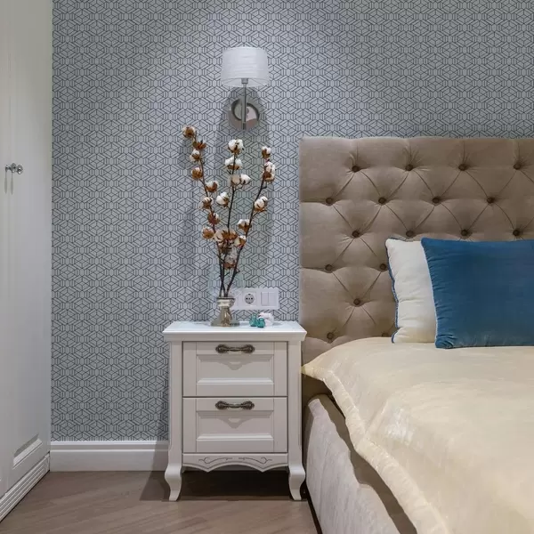 Papel pintado Patrón geométrico de cubos azul claro a01066