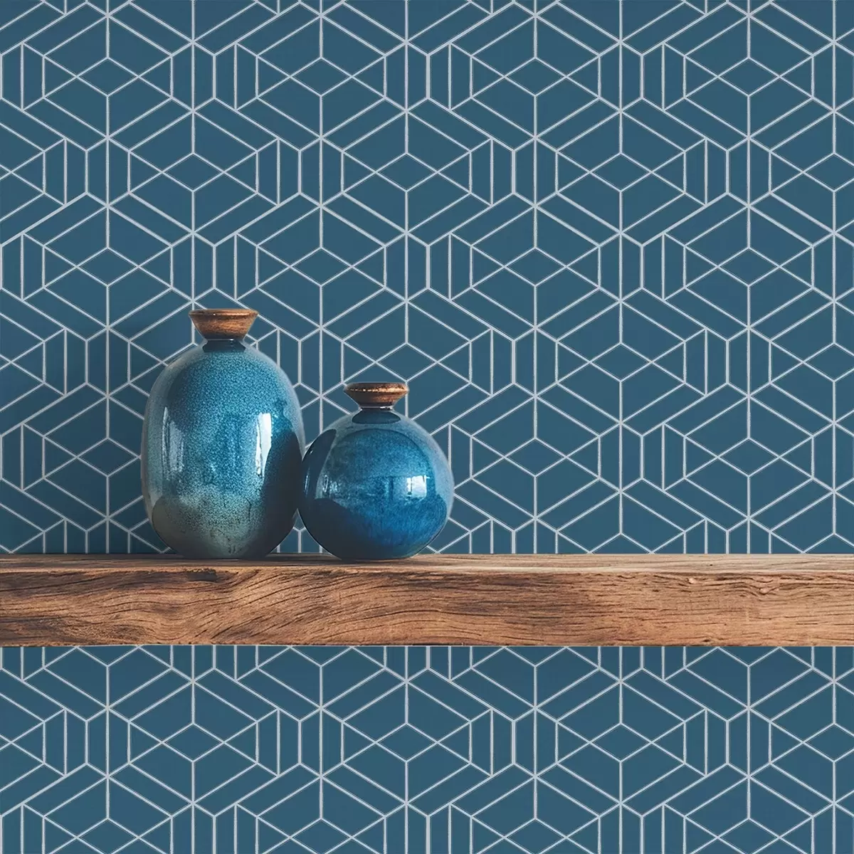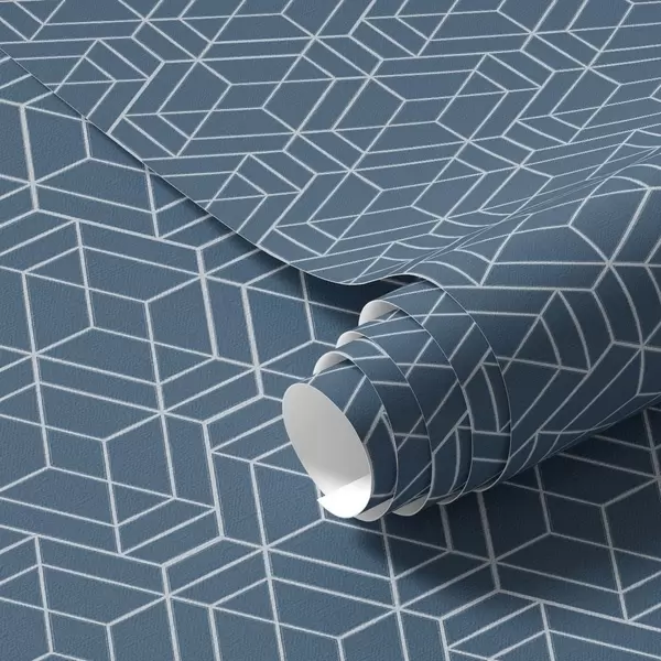 Papel tapiz Fondo azul con cubos lineales blancos en una cuadrícula Nr. a01067v1