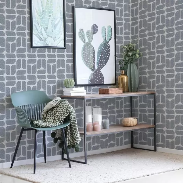 Papel tapiz Mosaico gris alternando formas redondeadas y rectangulares Nr. a01069
