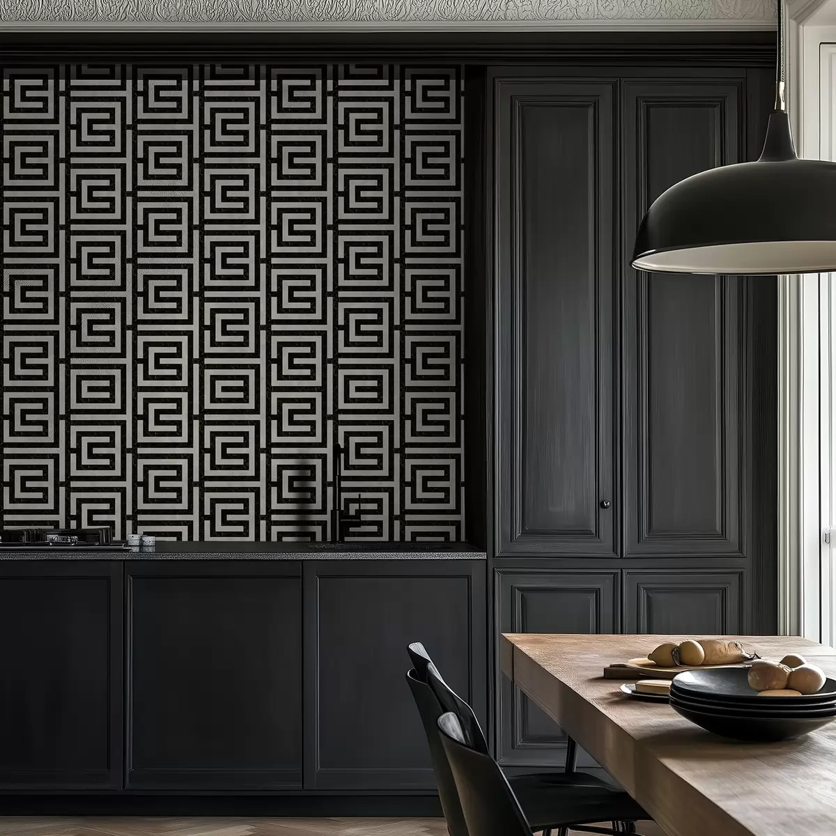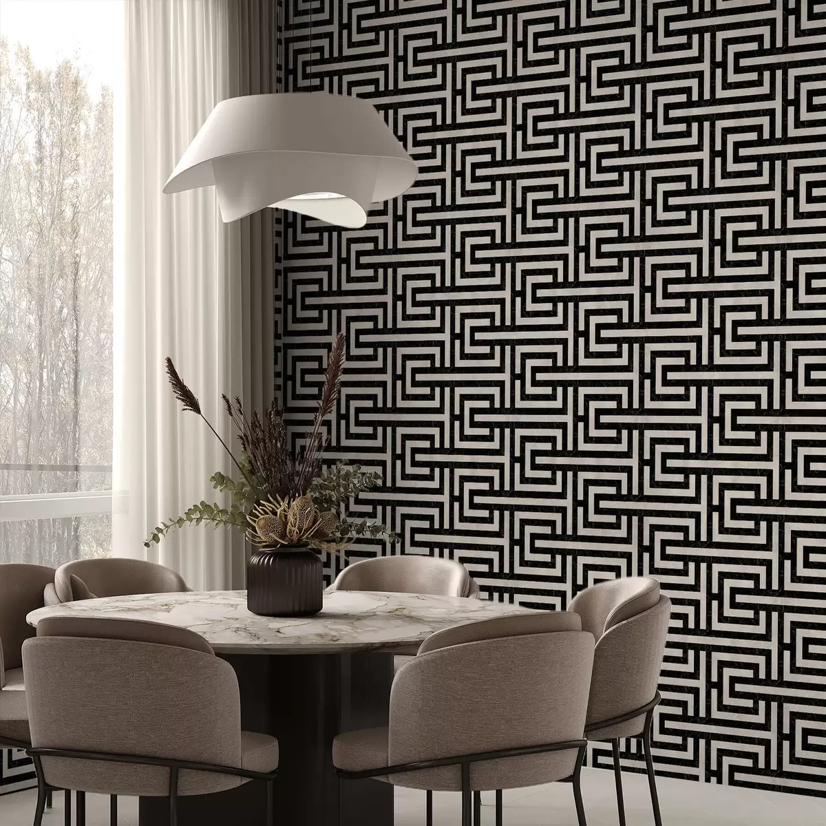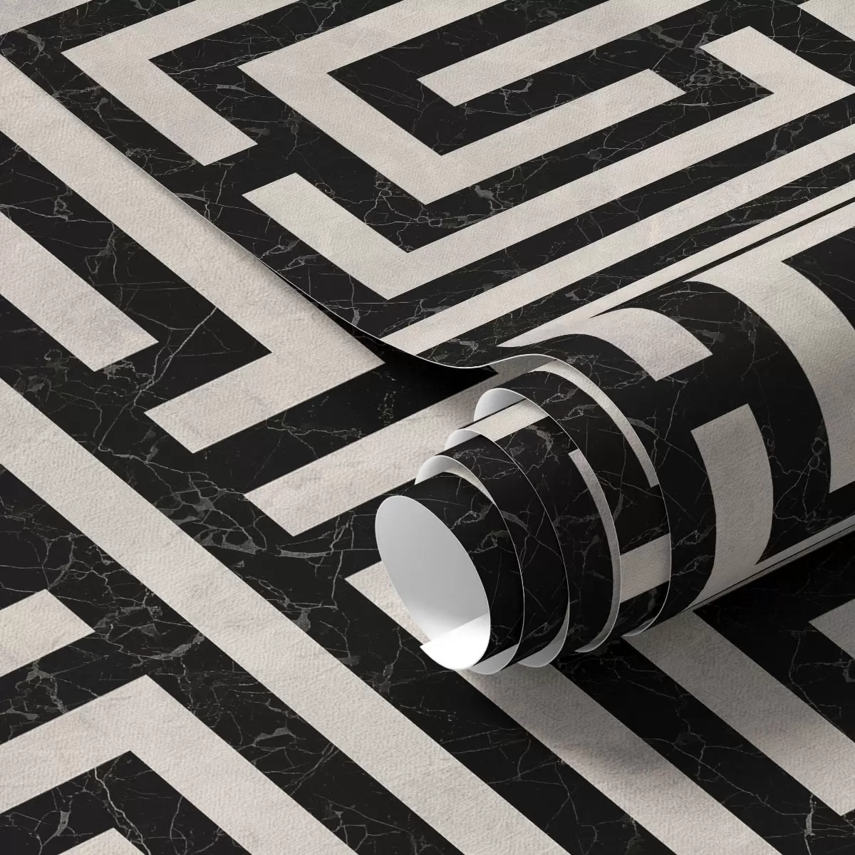Papel tapiz Patrón geométrico en blanco y negro con forma de laberinto Nr. a01073
