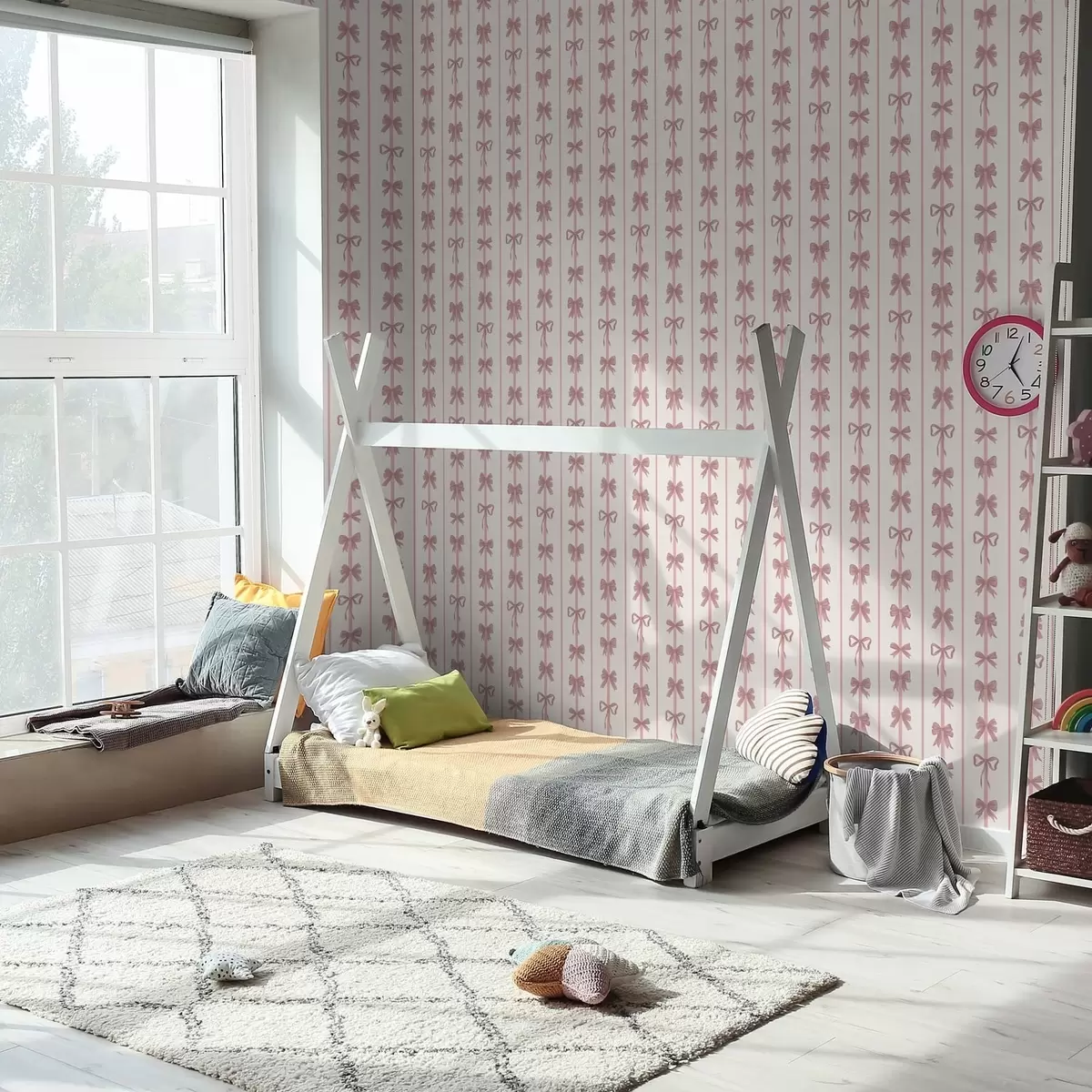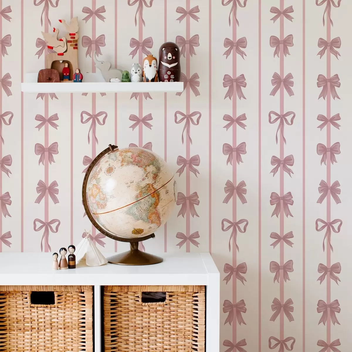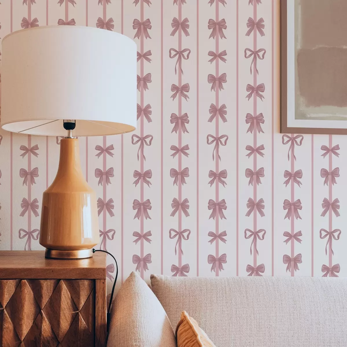 Papel tapiz Lazos rosas en rayas verticales sobre un fondo claro Nr. a01075