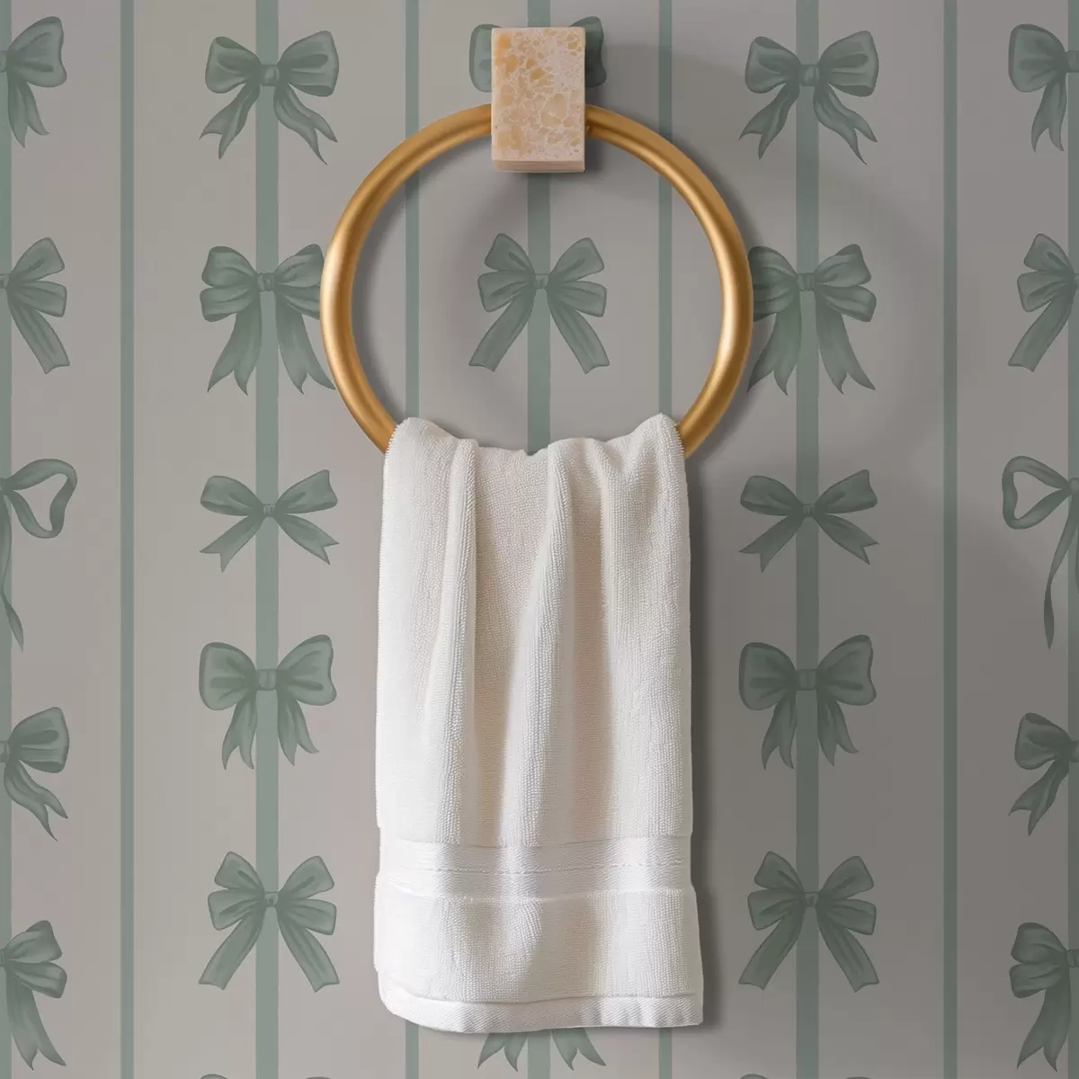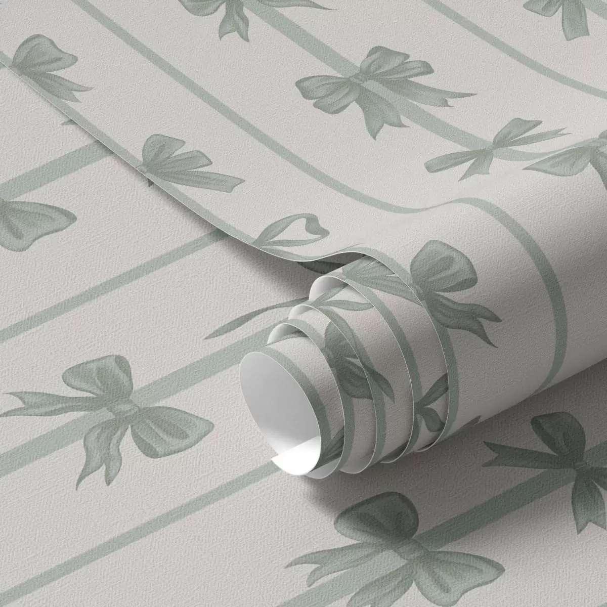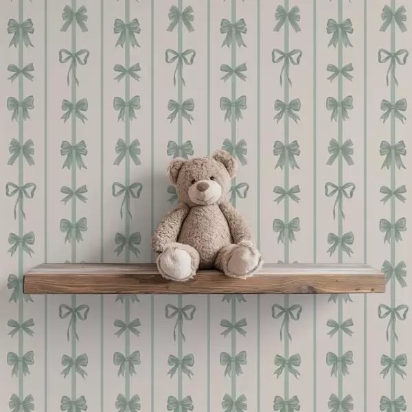 Papel tapiz Lazos verdes a rayas sobre fondo beige Nr. a01075v1