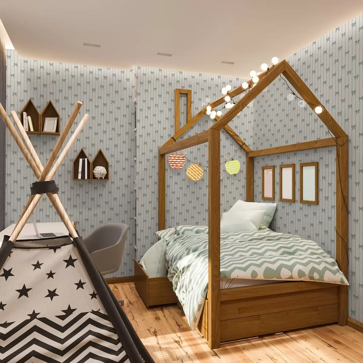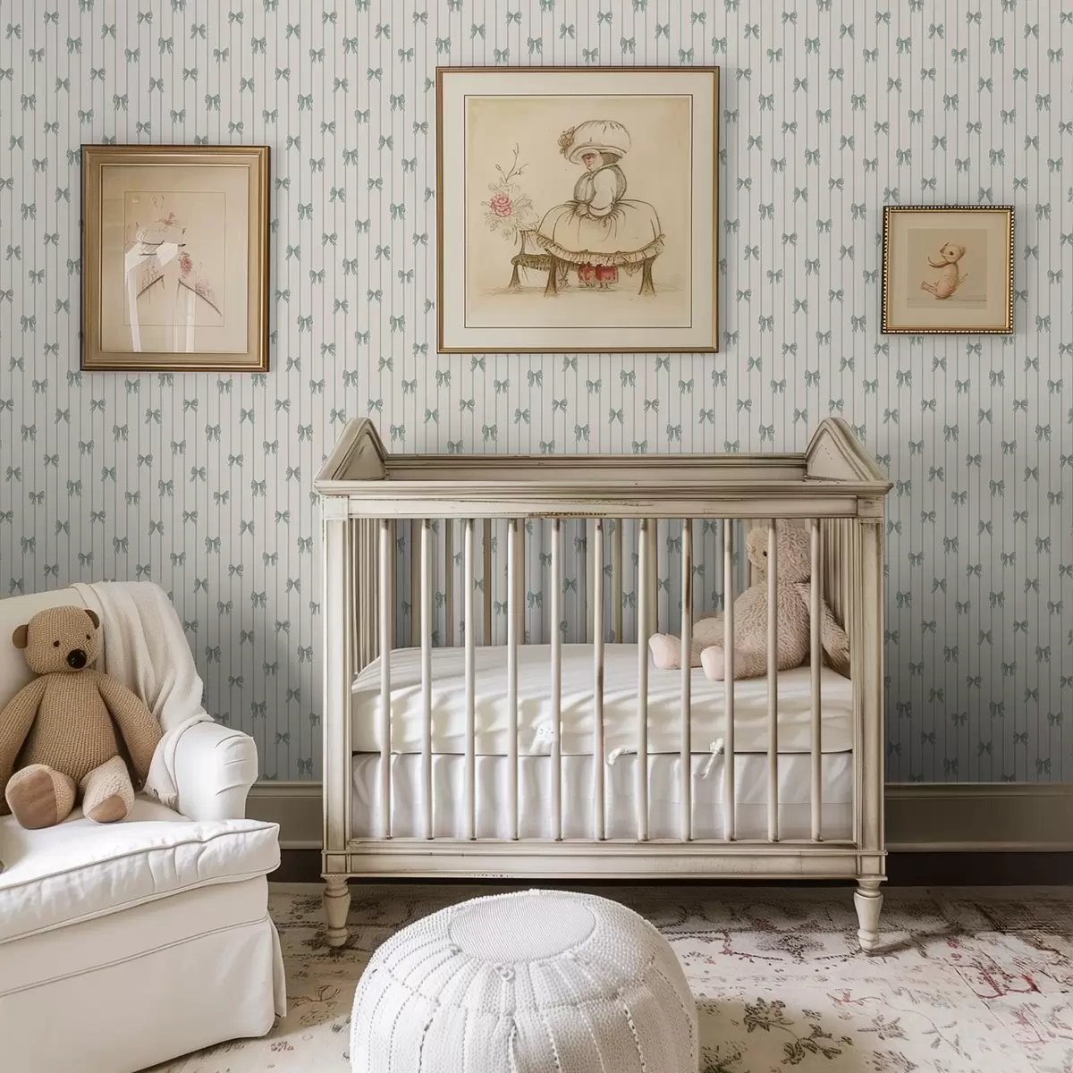 Papel tapiz Pequeños lazos verdes a rayas sobre fondo beige Nr. a01076v2