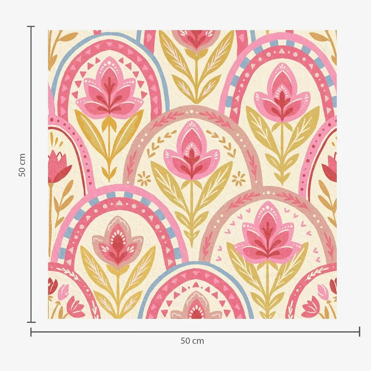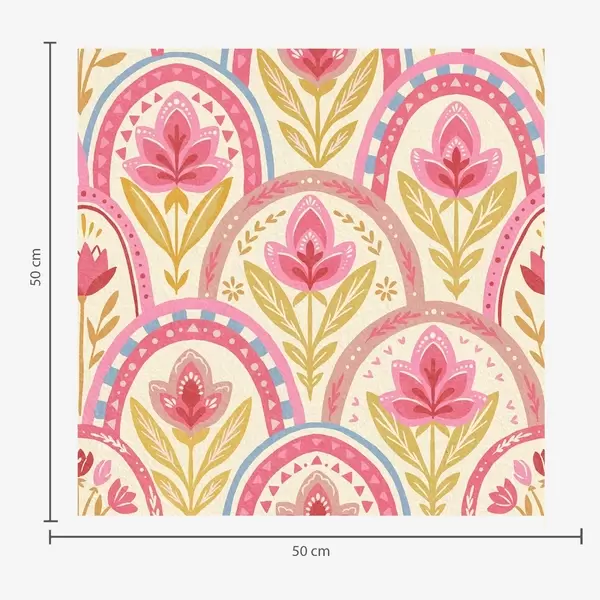 Papel tapiz Arcos con flores rosas en un diseño de estilo folclórico. Nr. a01080