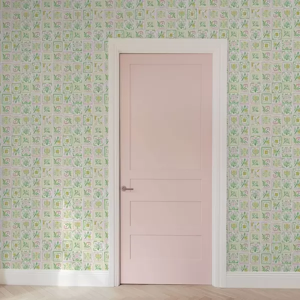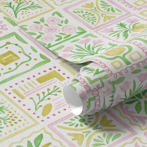 Papel tapiz Cuadrados acuarelados con ramas rosas y verdes Nr. a01082