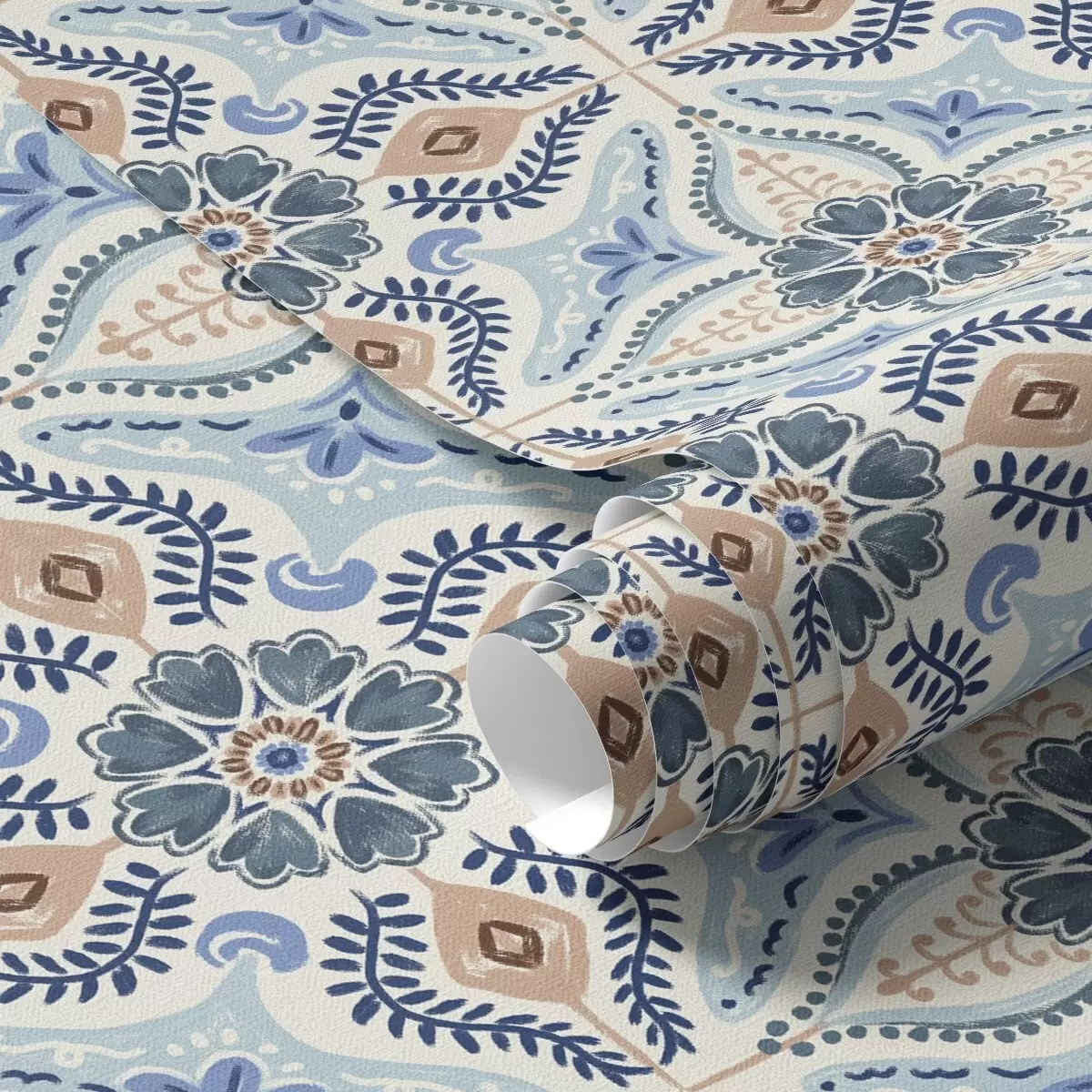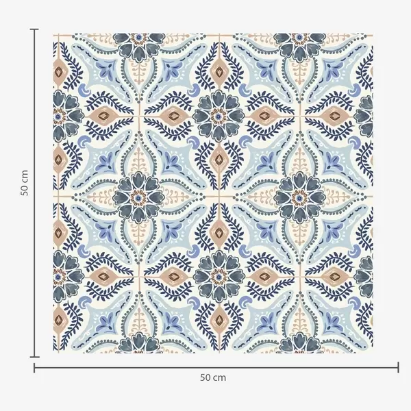 Papel tapiz Adorno estilo azulejo azul-beige pintado en acuarela Nr. a01085