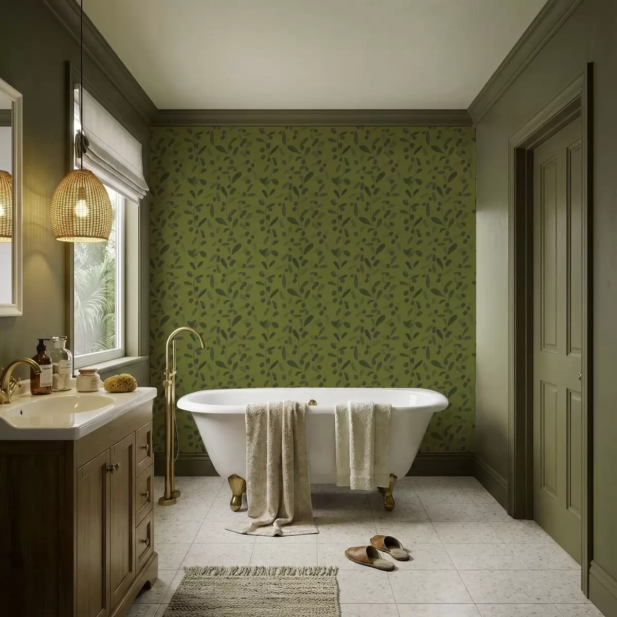 Papel tapiz Ramas verdes con hojas y bayas en olivo Nr. a01113