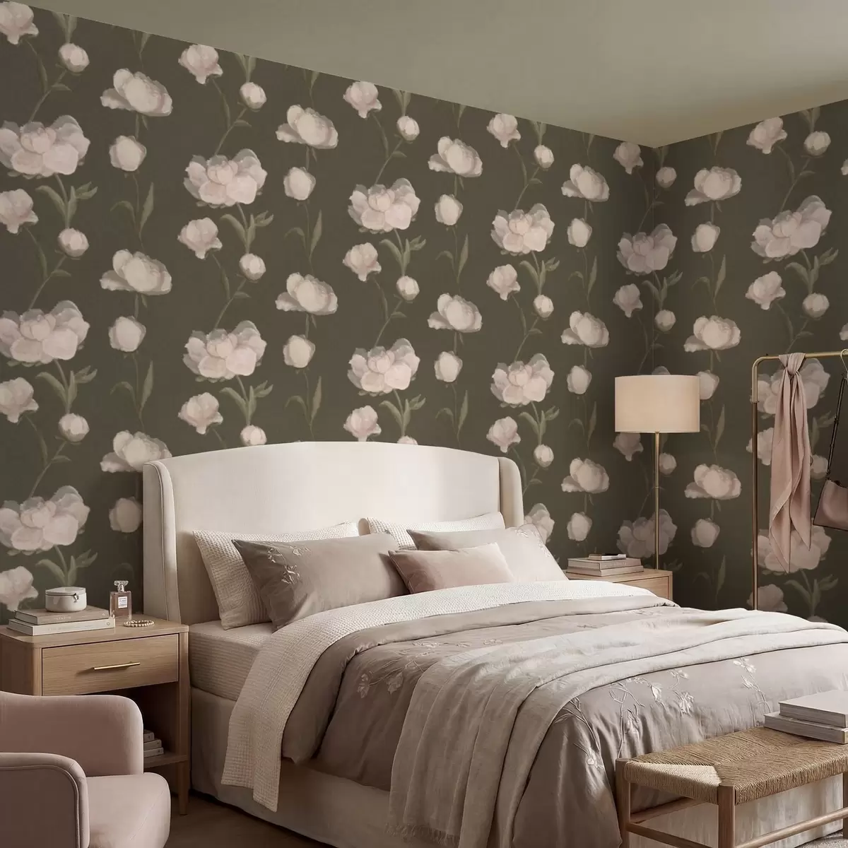 Papel tapiz Peonías de color rosa suave sobre fondo oscuro Nr. a01114v1