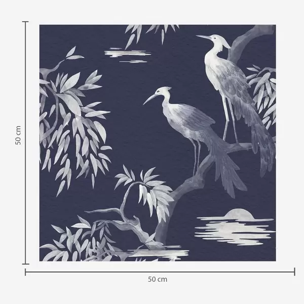 Papel tapiz Pájaros en una rama en tonos azules Nr. a01116