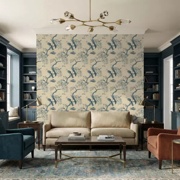 Papel pintado Pájaros en una rama en tonos azules a01116