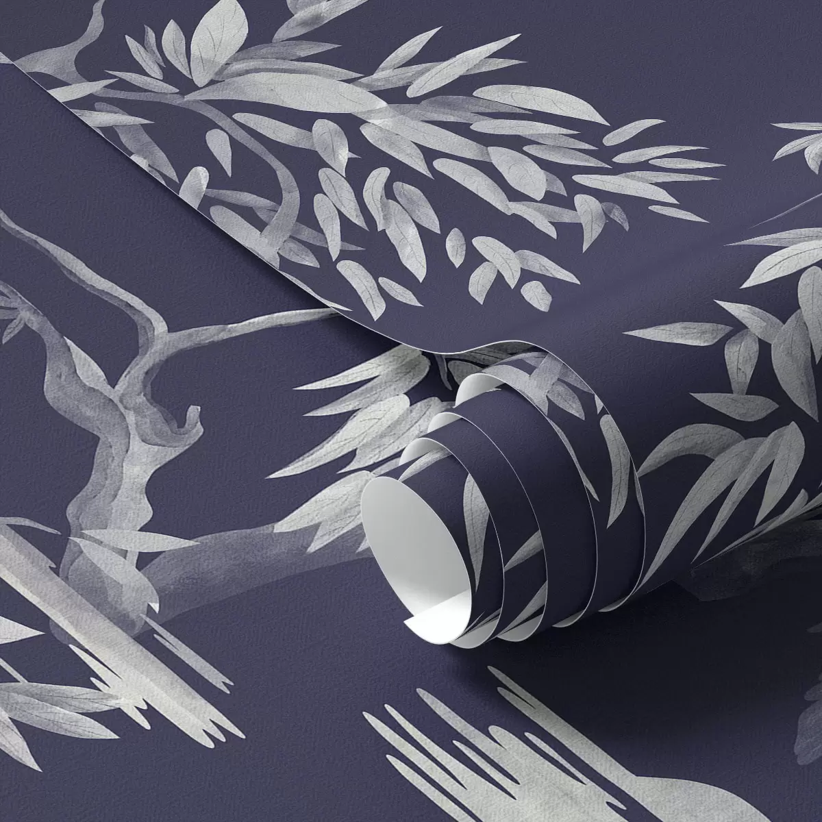 Papel tapiz Pájaros en una rama sobre fondo azul oscuro Nr. a01116v1