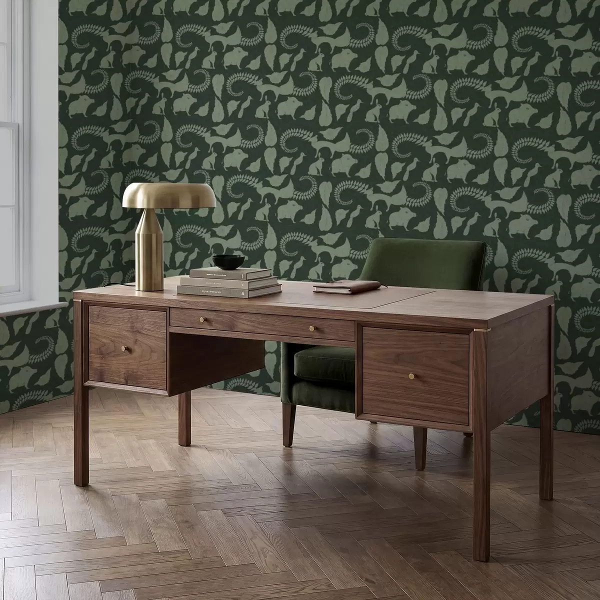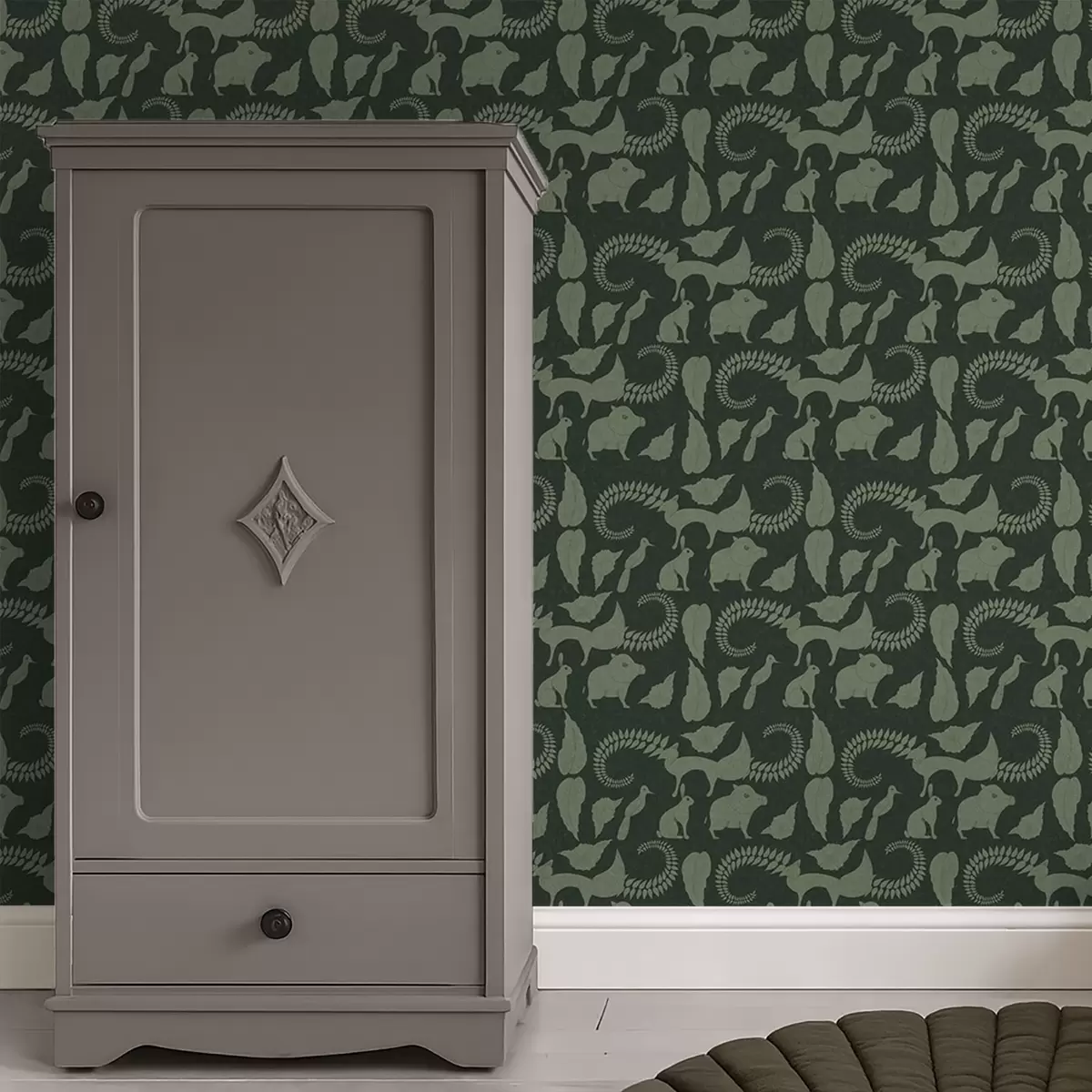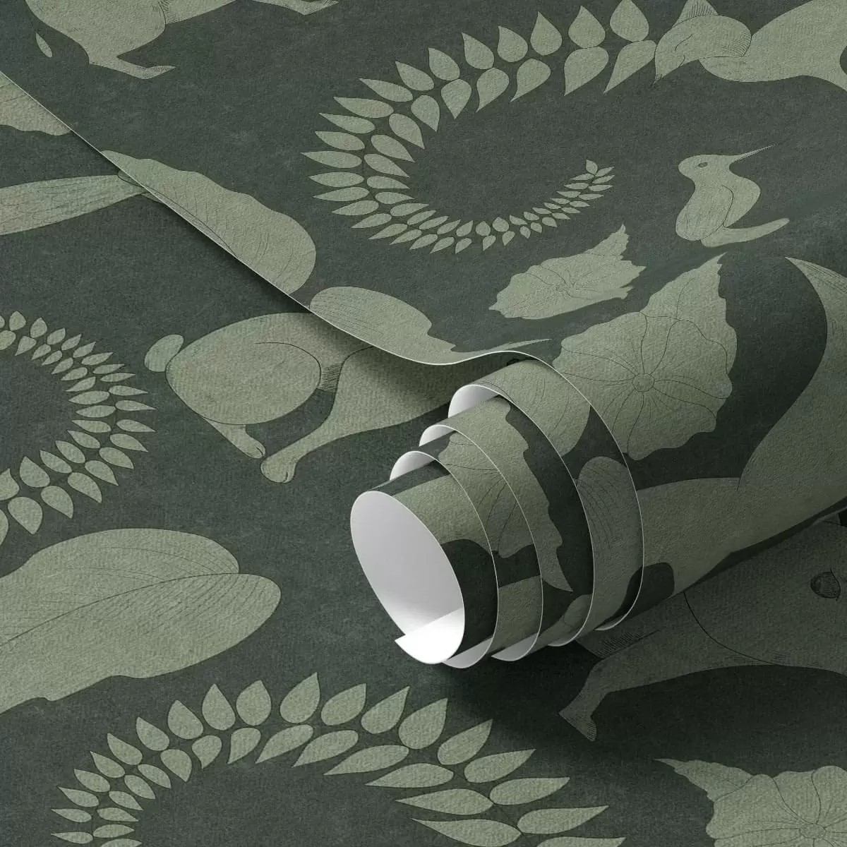 Papel tapiz Diseño forestal con animales sobre fondo verde Nr. a01121v1