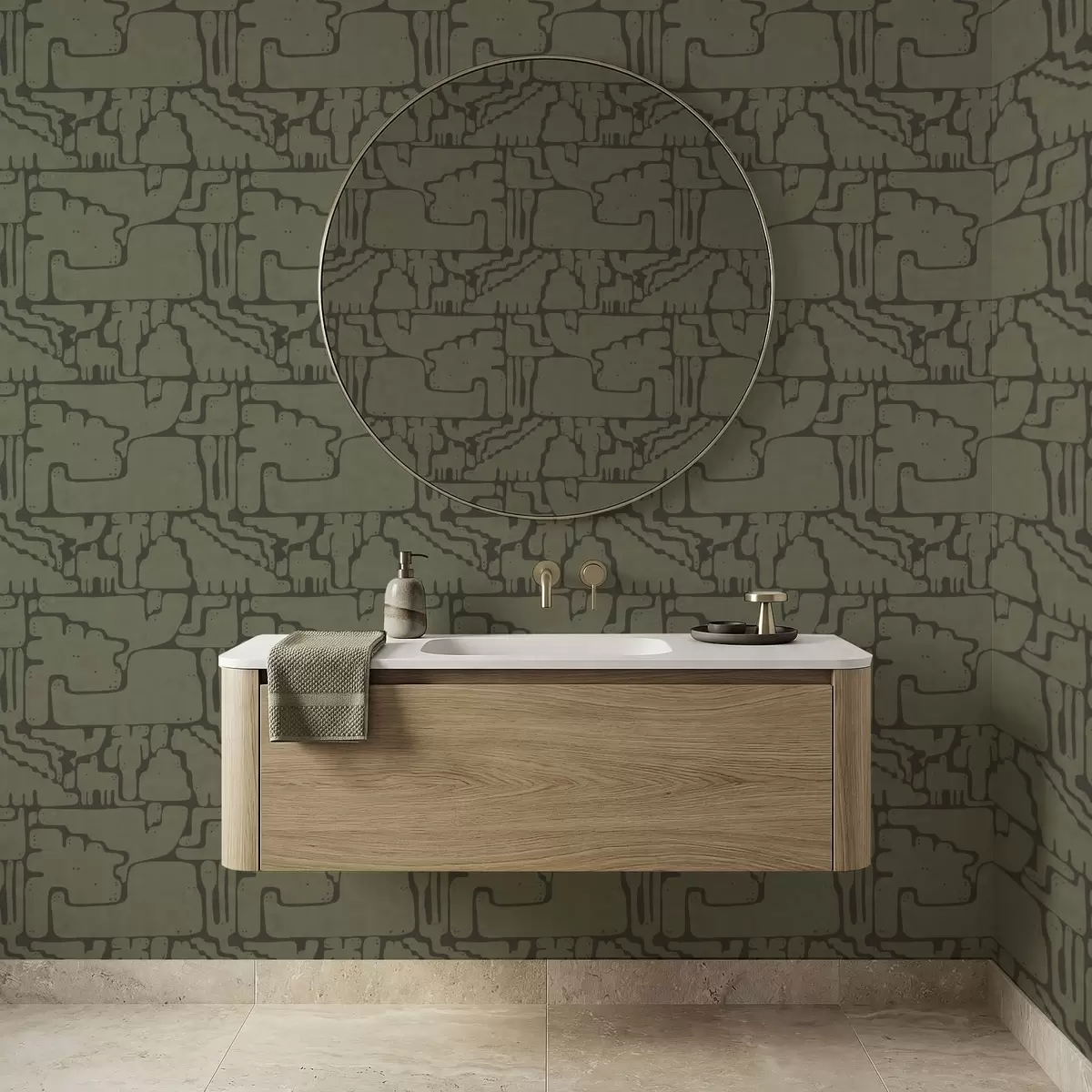Papel tapiz Patrón orgánico abstracto en tonos verdes Nr. a01122