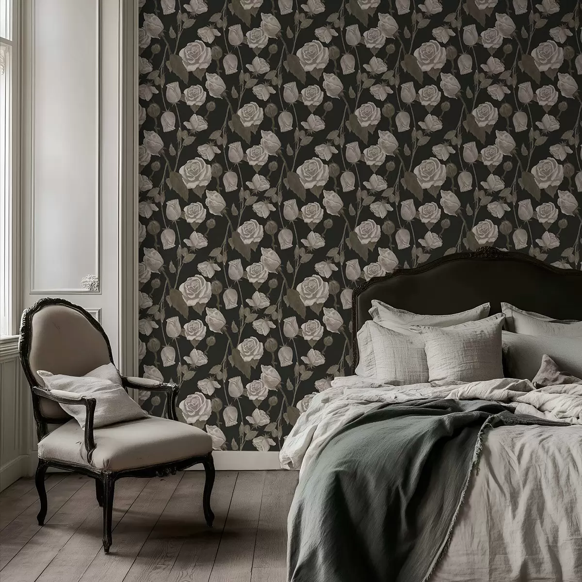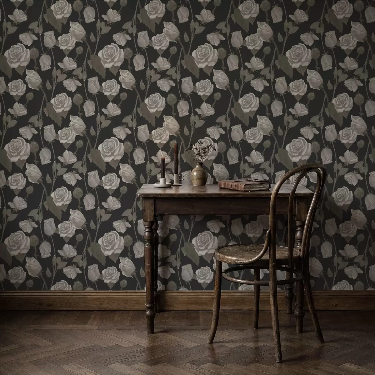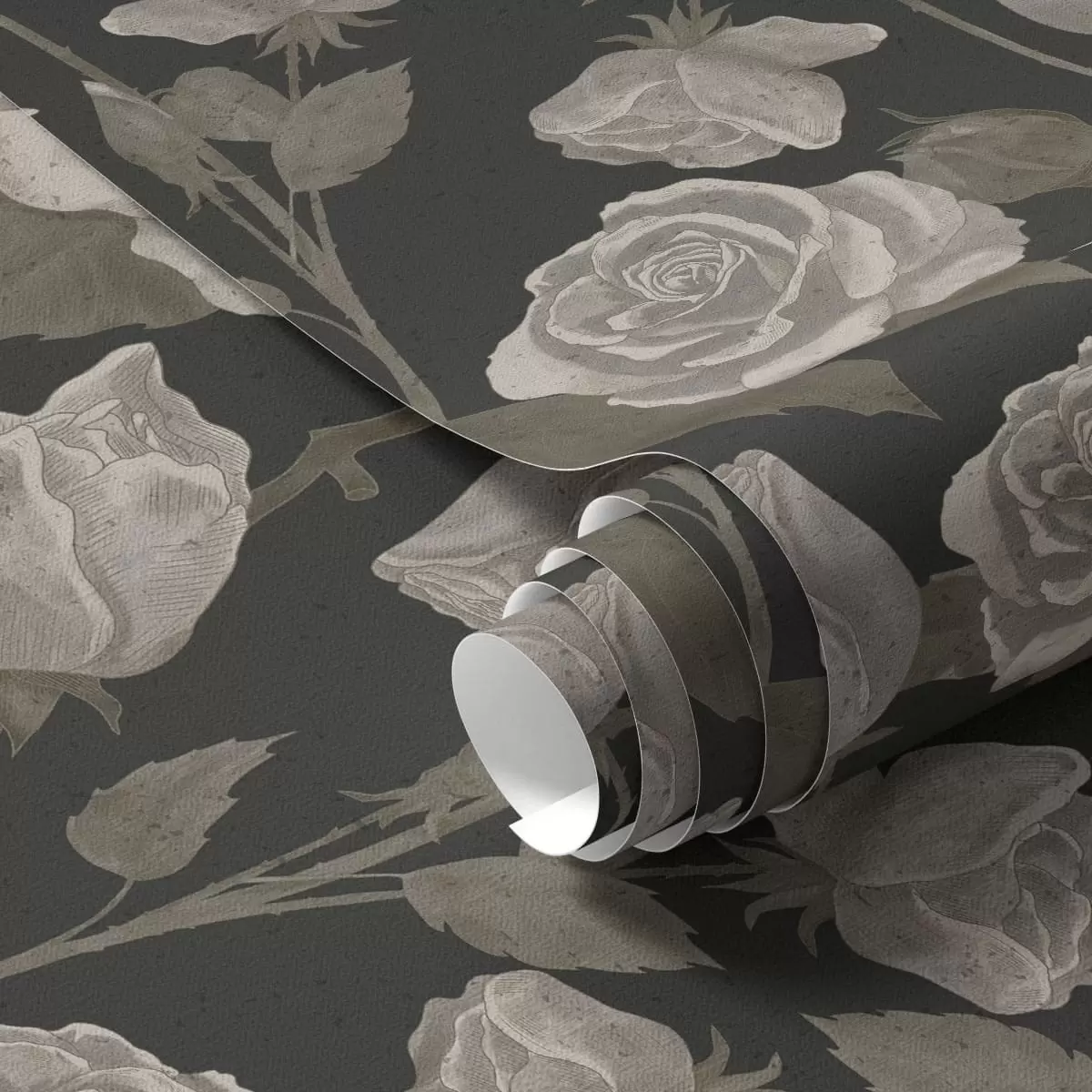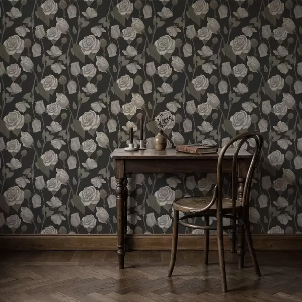 Papel tapiz Estampado floral con rosas sobre fondo oscuro Nr. a01123