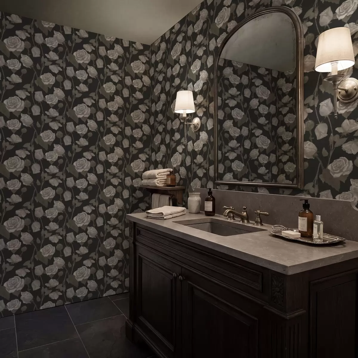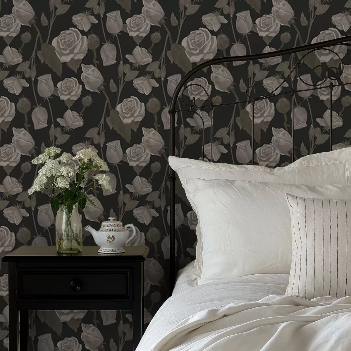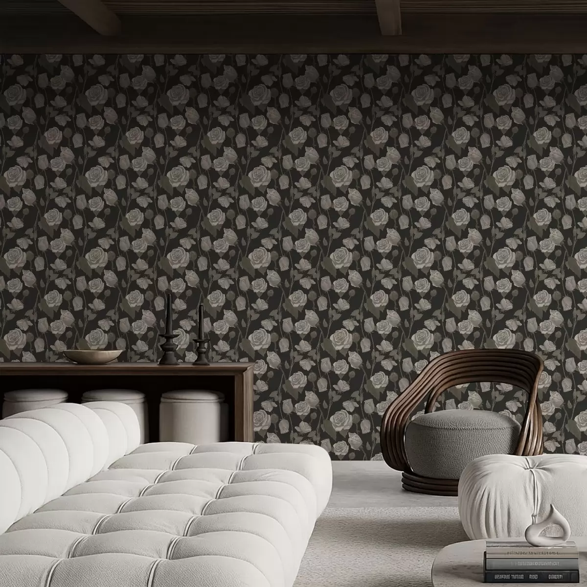 Papel tapiz Estampado floral con rosas sobre fondo oscuro Nr. a01123