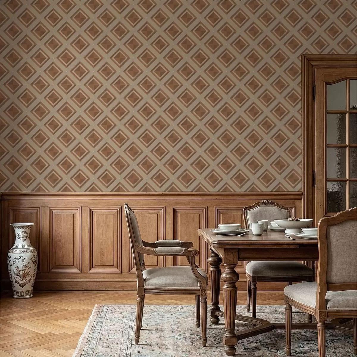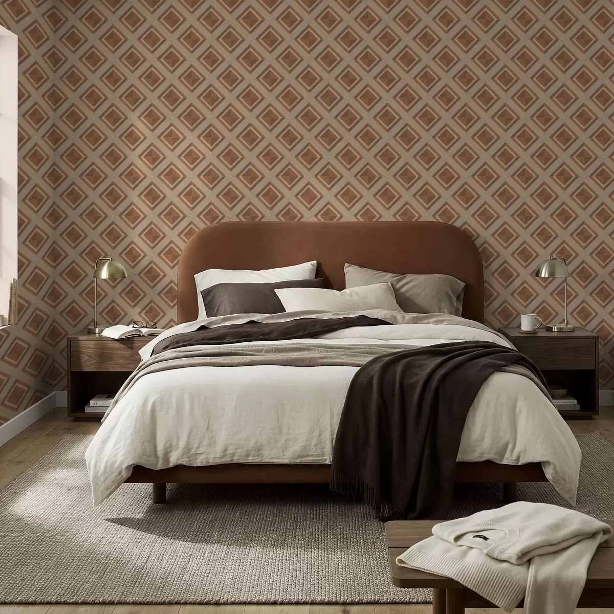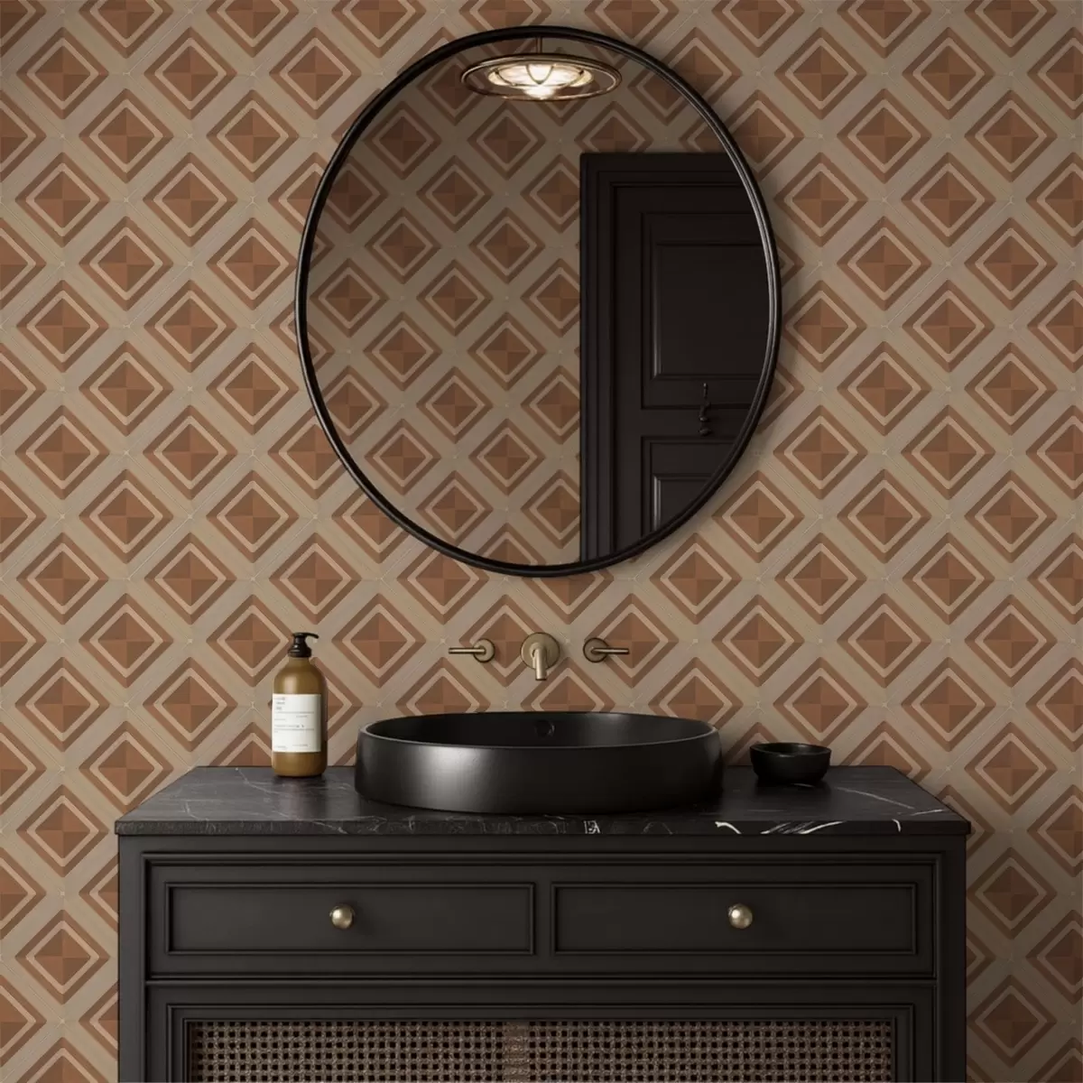 Papel tapiz Diseño geométrico de rombos en tonos terracota. Nr. a01128