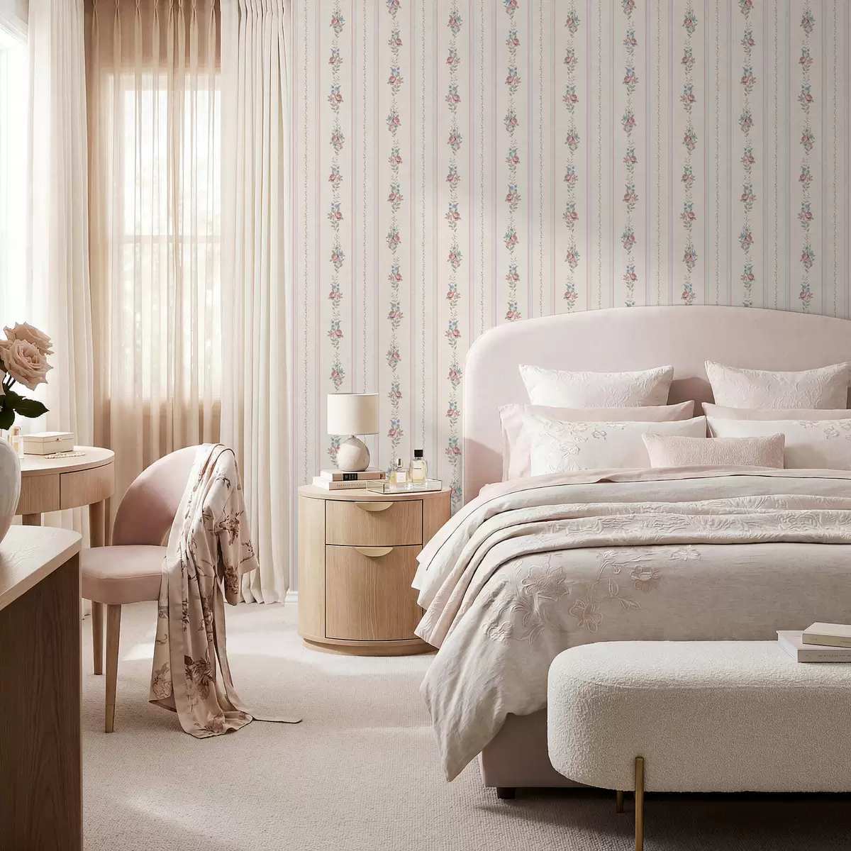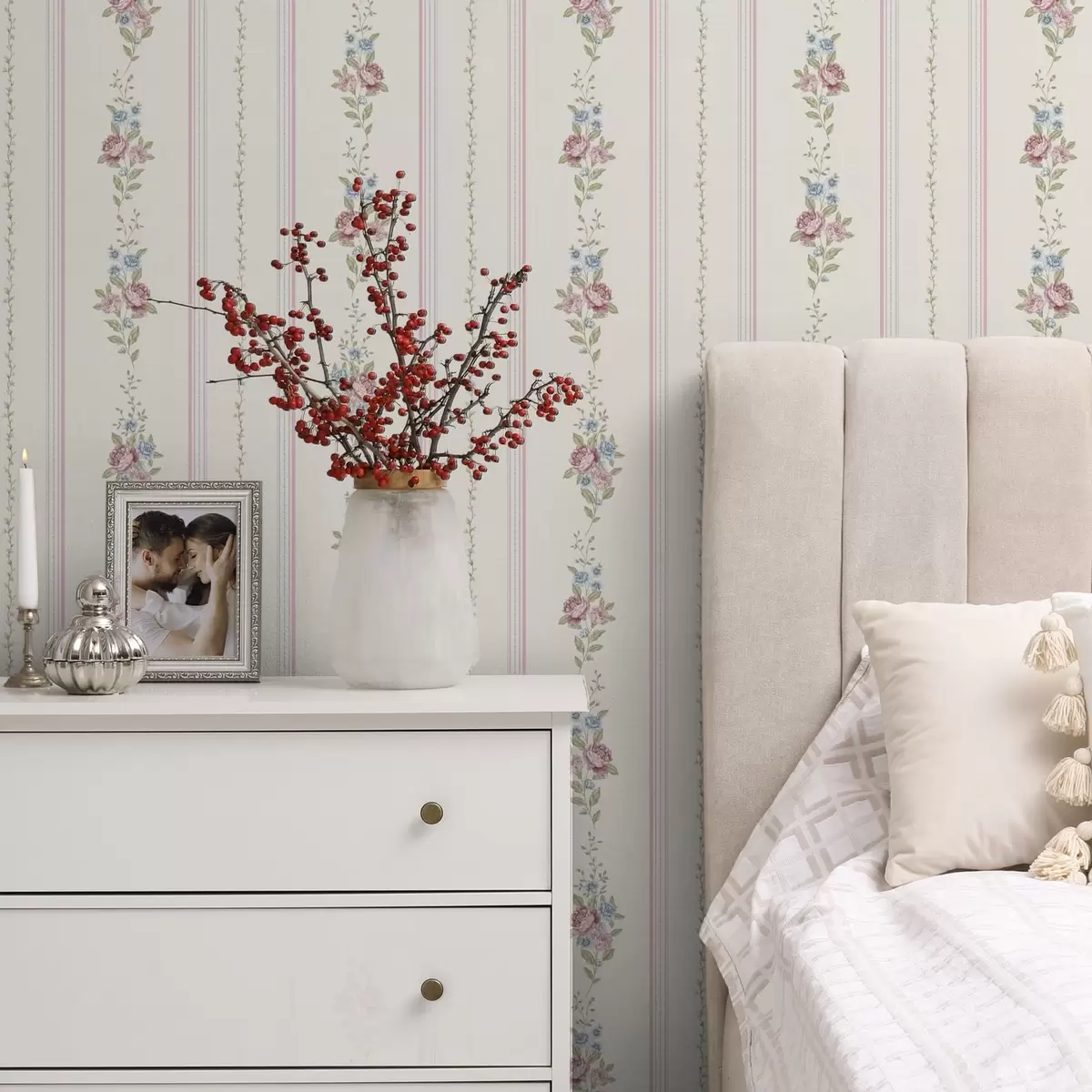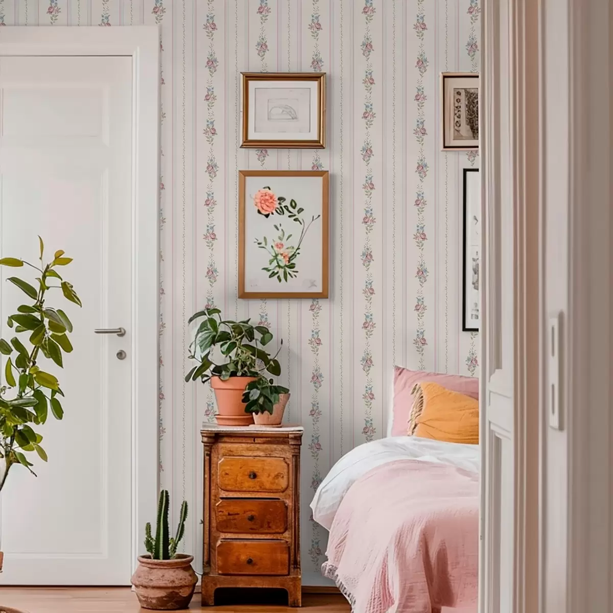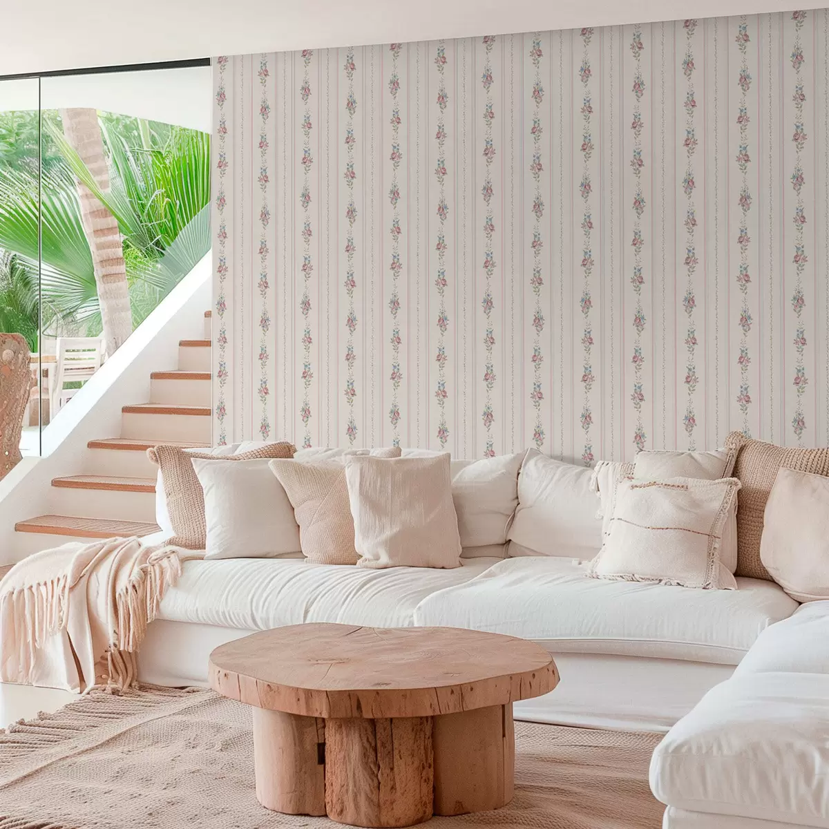 Papel tapiz Estampado floral a rayas en tonos suaves Nr. a01130