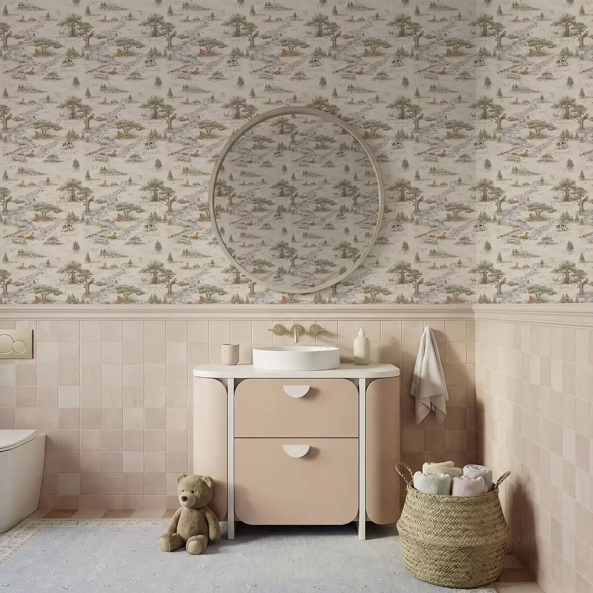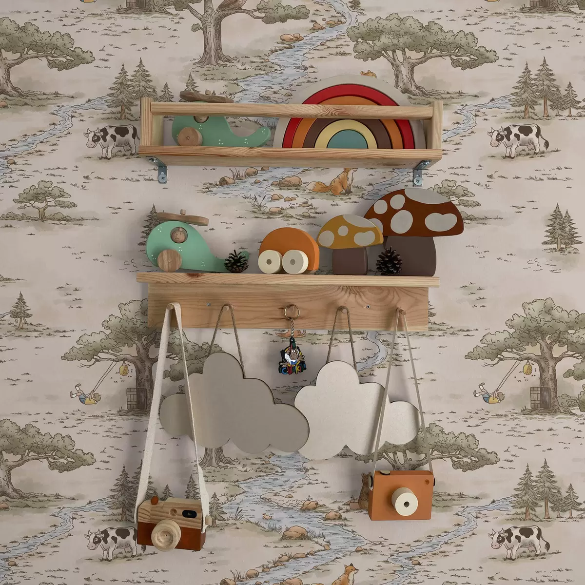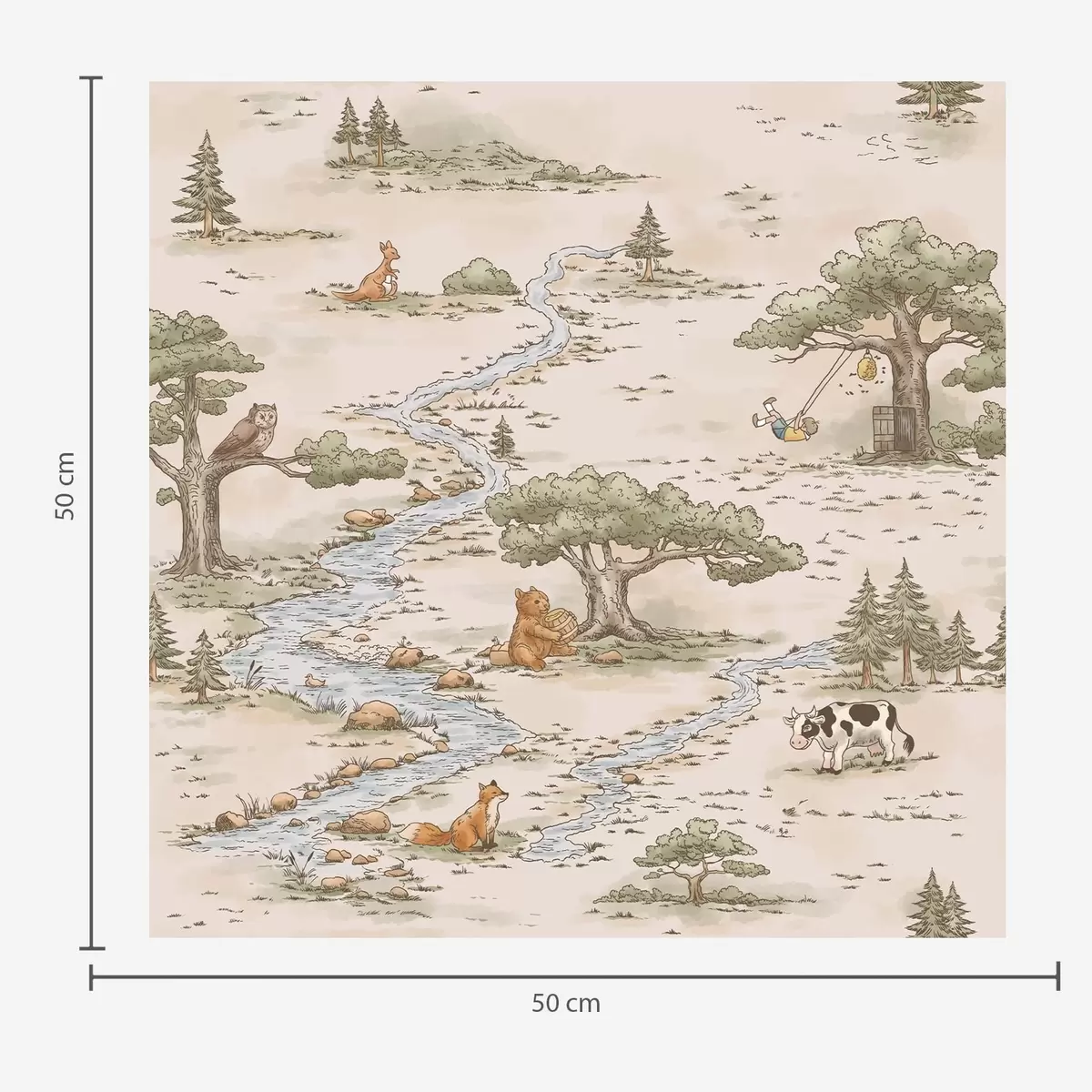 Papel tapiz Ilustración de la naturaleza con animales y un río Nr. a01157