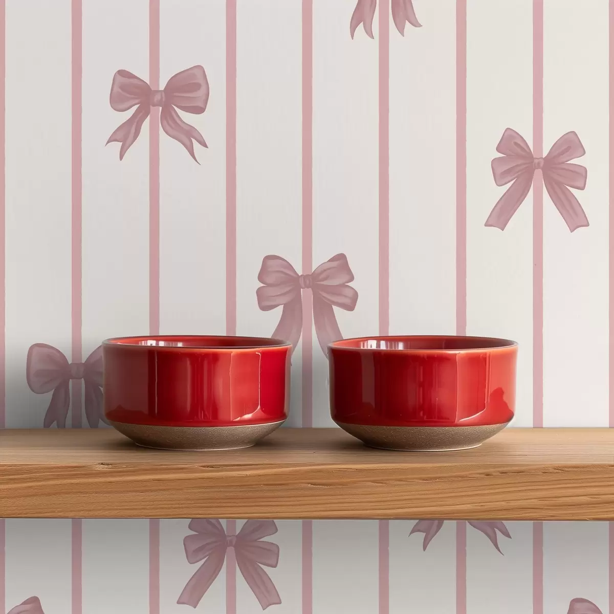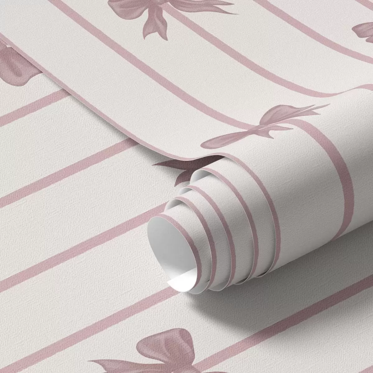 Papel tapiz Lazos rosas sobre rayas verticales sobre un fondo claro Nr. a01162