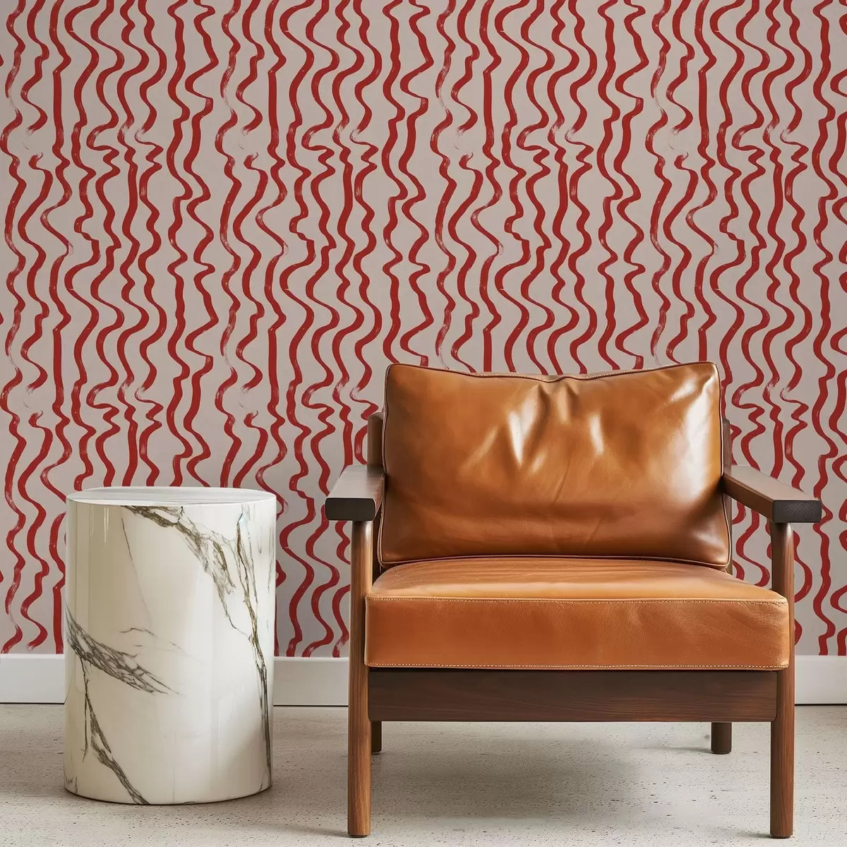 Papel tapiz Líneas onduladas rojas sobre fondo claro Nr. a01168
