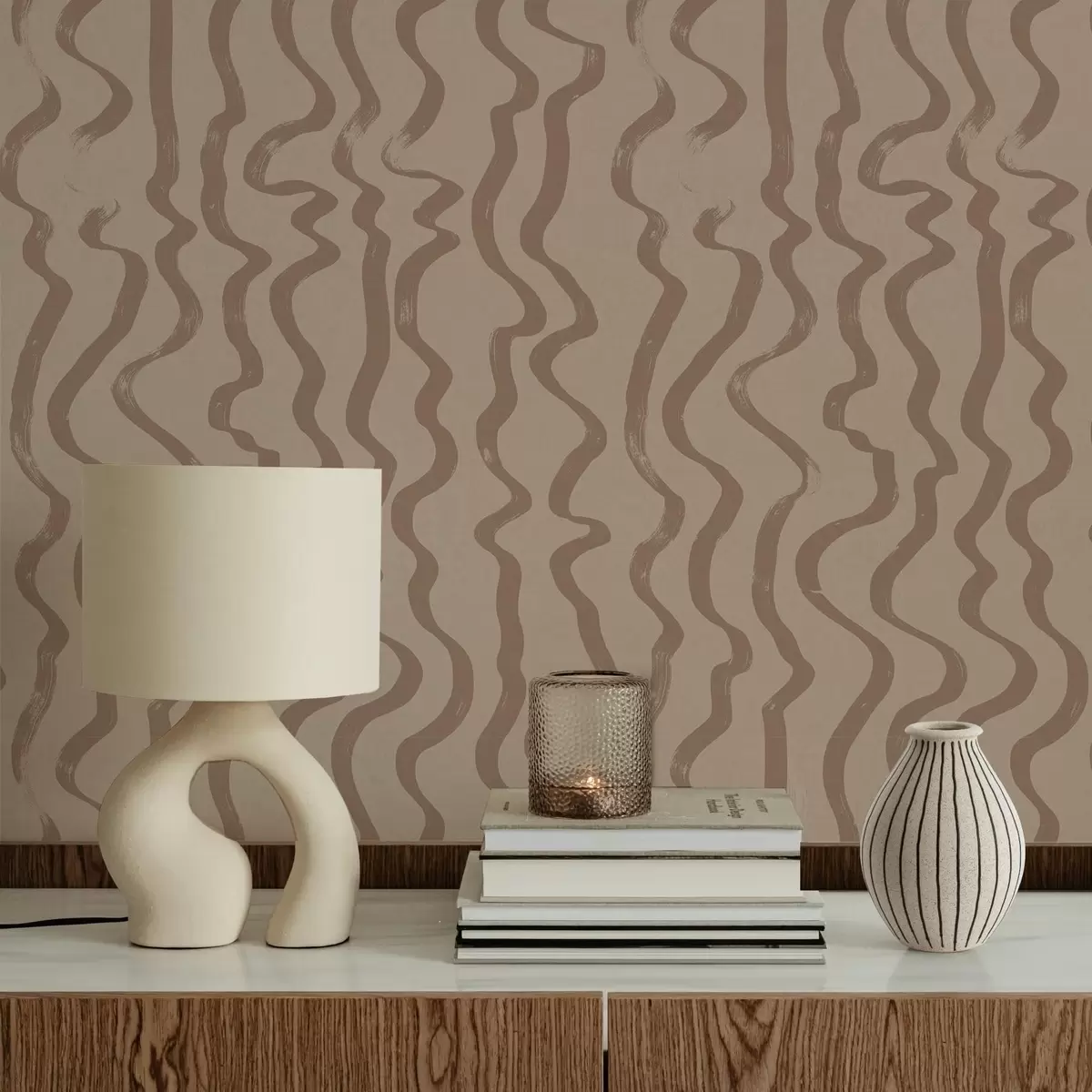 Papel tapiz Líneas onduladas de color beige sobre fondo claro Nr. a01168v2