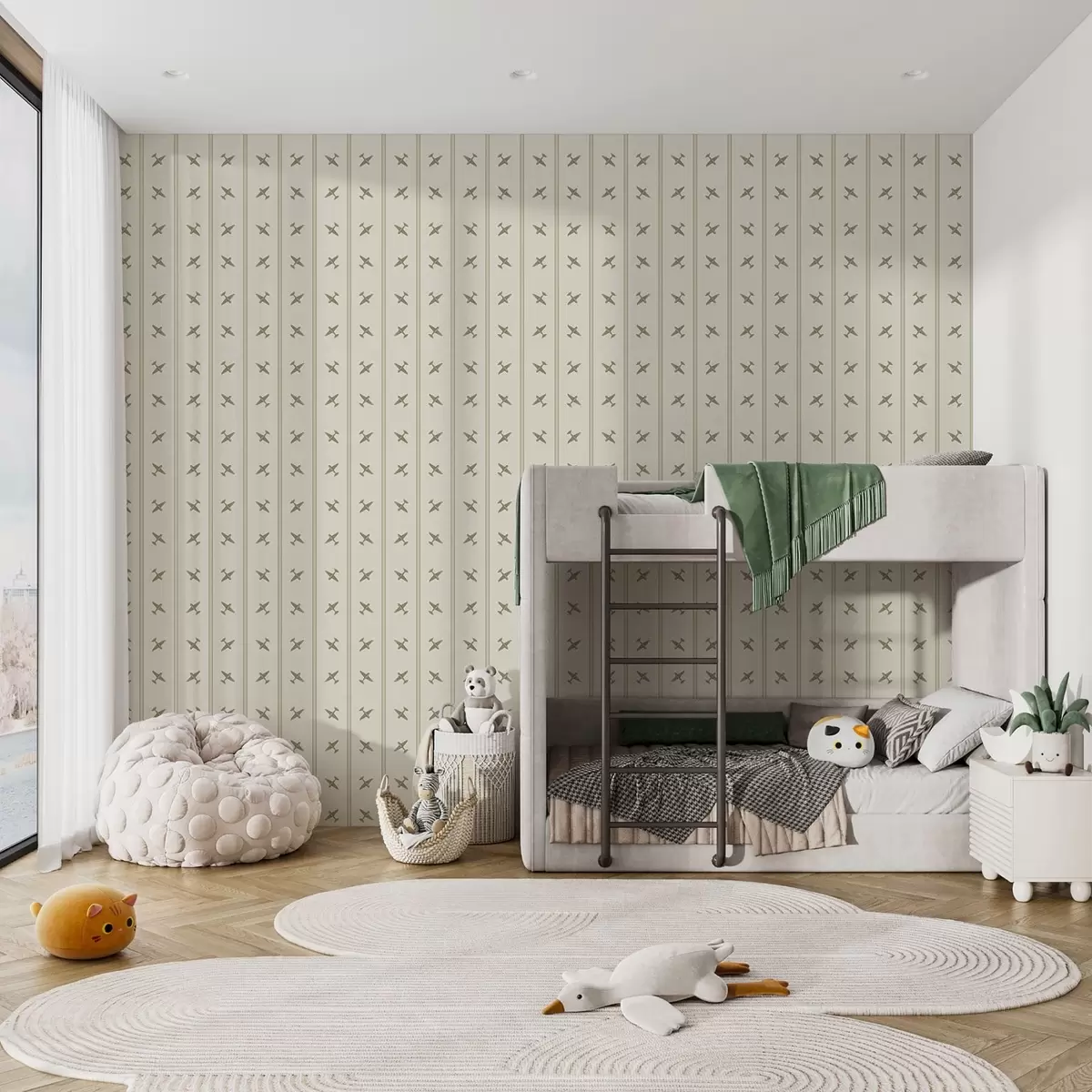 Papel tapiz Aviones con un diseño a rayas en tonos oliva Nr. a01170v2