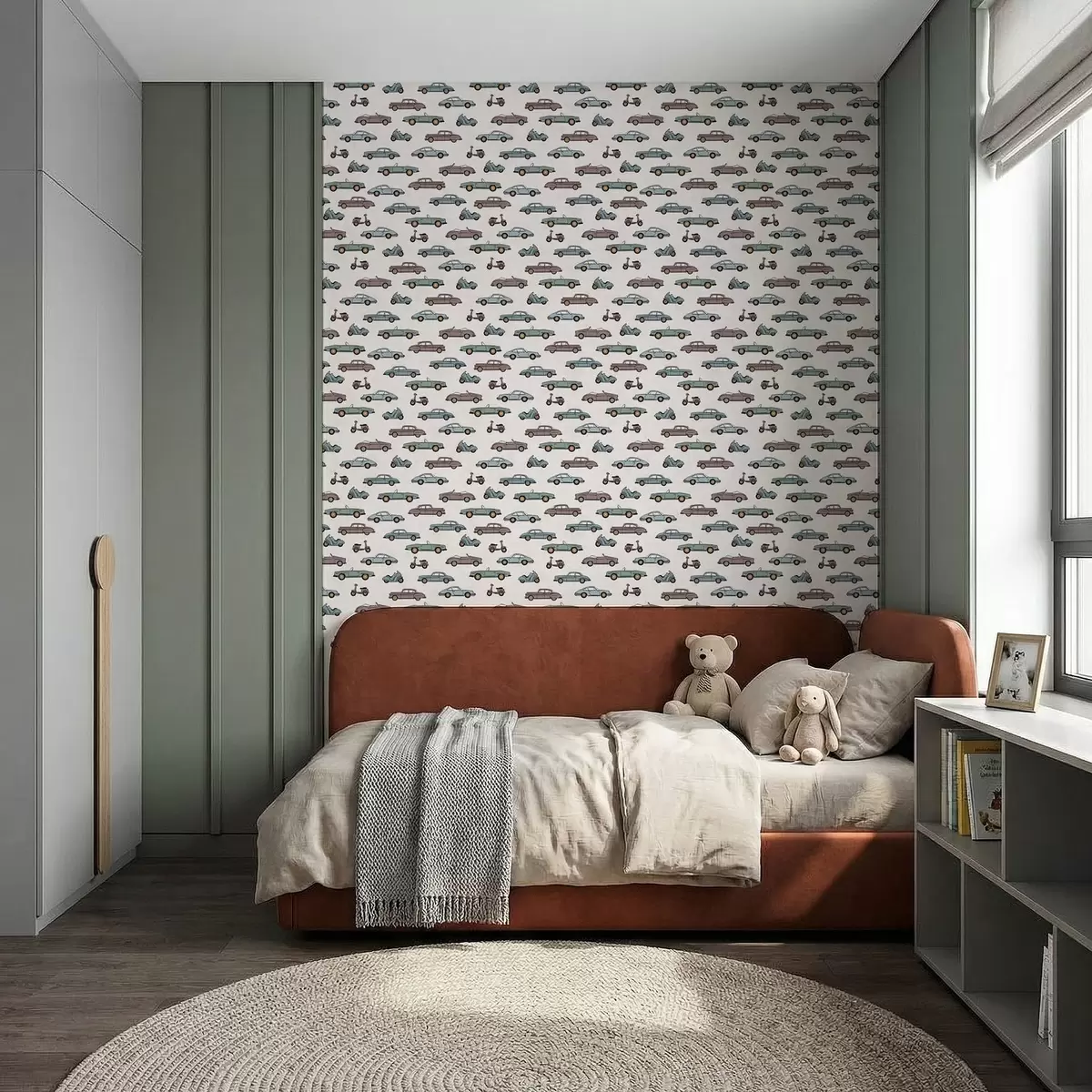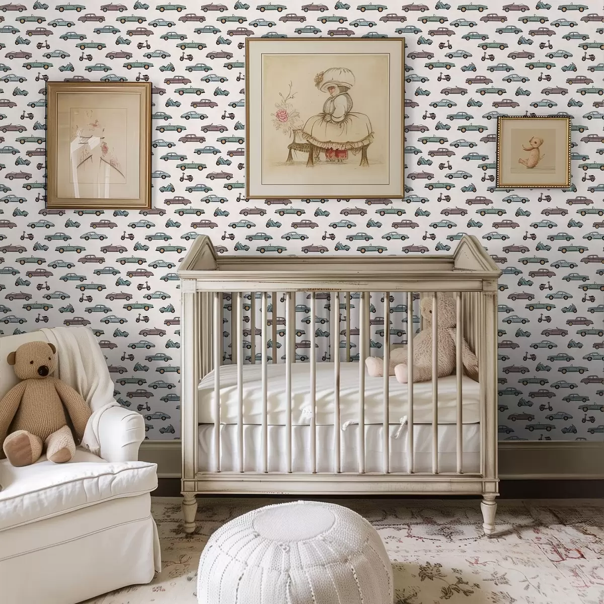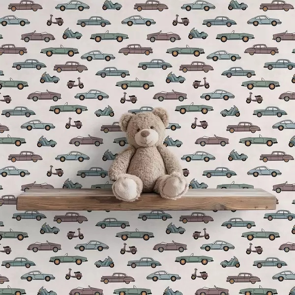 Papel tapiz Coches y motos retro sobre fondo claro Nr. a01172