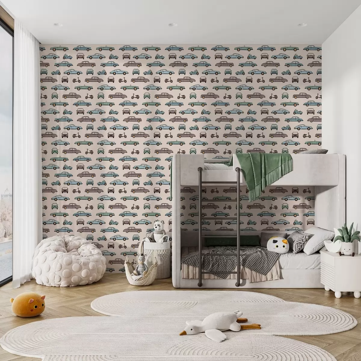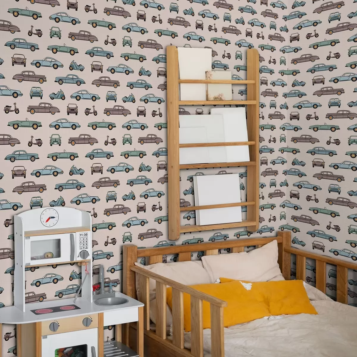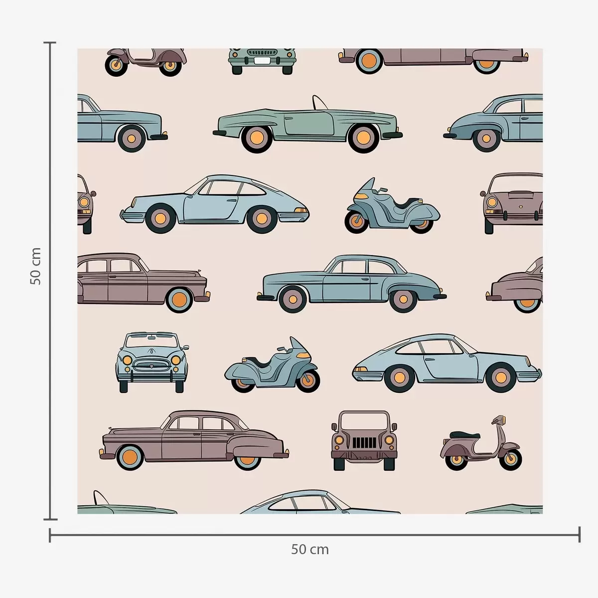 Papel tapiz Coches y motos retro sobre fondo beige Nr. a01178v1