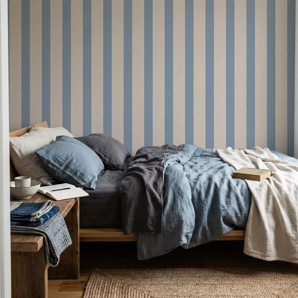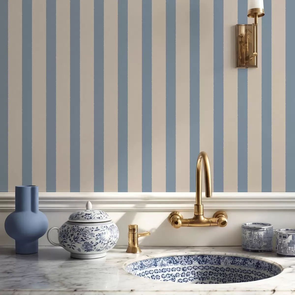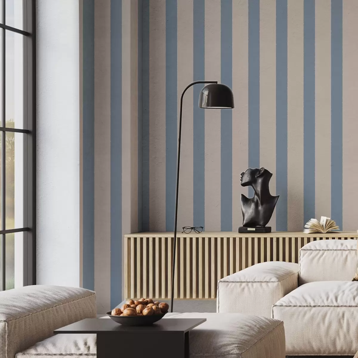 Papel tapiz Rayas verticales en tonos beige y azul claro Nr. a01180v3