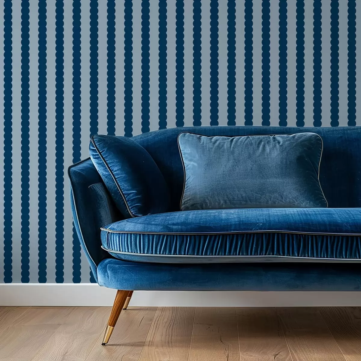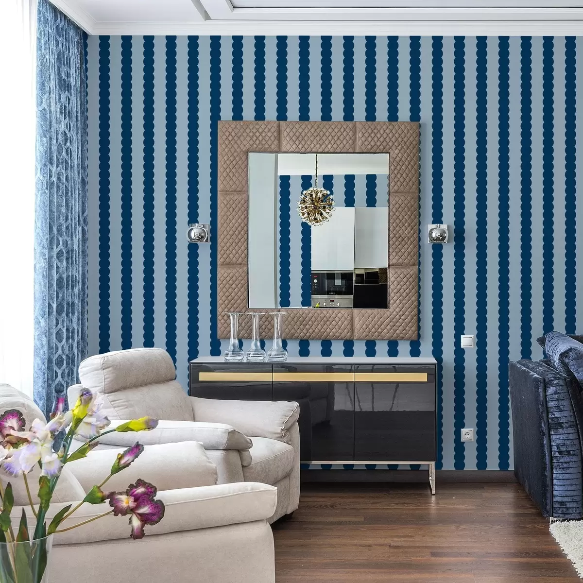 Papel tapiz Rayas onduladas de color azul oscuro en estilo minimalista Nr. a01182v3