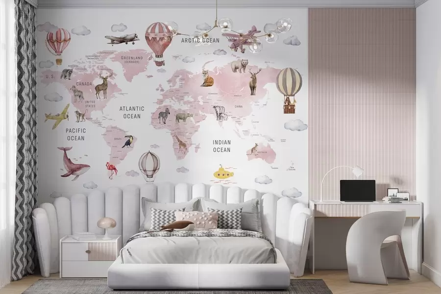 Diseño de papel pintado para habitación infantil con simpáticos animales sobre nubes